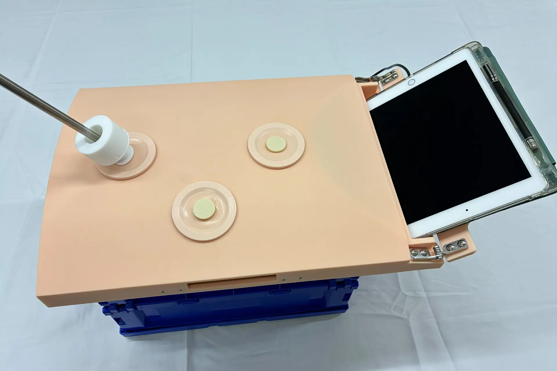 腹腔鏡下手術支援業務に携わる臨床工学技士の方々に向けた教育用腹腔モデルです。軽量で持ち運びやすいコンパクトな構造に加え、損耗部品の交換が可能なため、長期間にわたる反復練習にも対応できます。低コストでありながら高い耐久性を備え、教育用途に適した設計となっています。